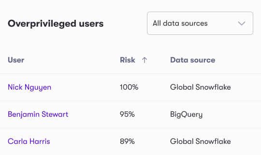 Get an understanding of the data usage across your data stack. See which data objects or permissions are never used, rank your data objects on popularity, and discover over-privileged users that don’t use their permissions. These insights are the basis for informed least privilege access management.